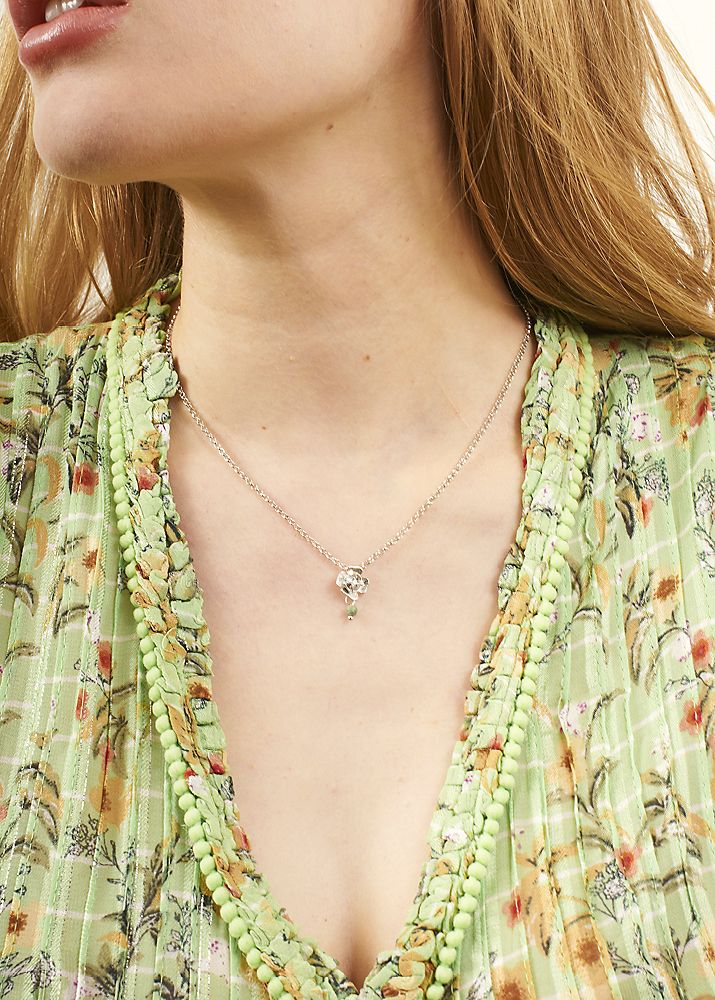 This elegant handmade, Silver plated Rose necklace with African Pine is a wonderful addition to your look.