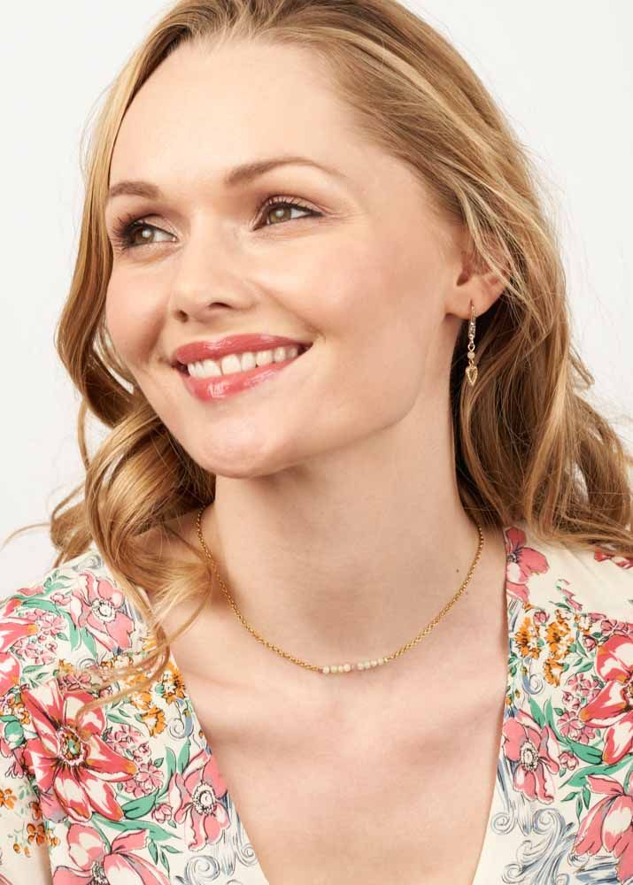 A stunning, semi-precious necklace handmade with a beautiful bar of natural amazonite beads. In bright, captivating shades of green, blue and yellow, this unique necklace will add a splash of vibrant colour and individuality to your jewellery collection.