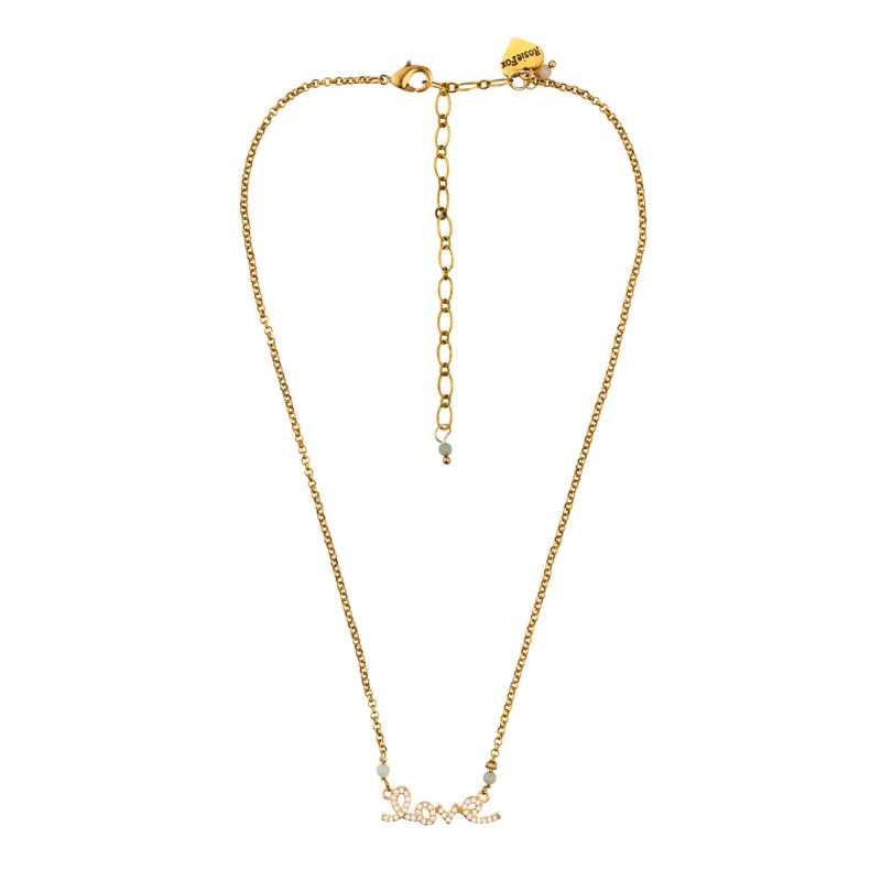 A stunning, semi-precious necklace, handmade with natural amazonite gemstone beads, adorned with a crystal encrusted 'love' pendant. In captivating shades of turquoise-green, this one-of-a-kind piece will add a vibrant splash of colour to your jewellery collection.