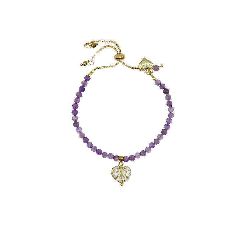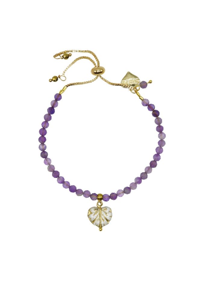 Designed and handmade in Herefordshire this stunning 14ct Gold plated, semi-precious, adjustable bracelet is made from beautiful Amethyst gemstone crystals. The gemstone beads are approx 4mm each and faceted to give extra sparkle when the light hits them.