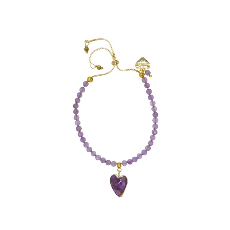 This beautiful handmade bracelet has a stunning Amethyst Gemstone Heart and my signature 14ct Gold plated Rosie Fox heart charm.