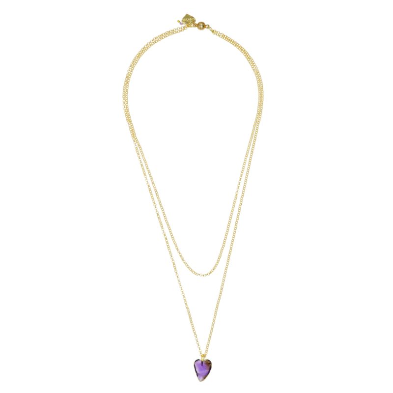 This beautiful 18ct Gold plated chain necklace has two layers and lies perfectly adoring your neckline. There is a beautiful Amethyst gemstone and the stunning Amethyst Gemstone Heart finishes the necklace on the lowest layer.