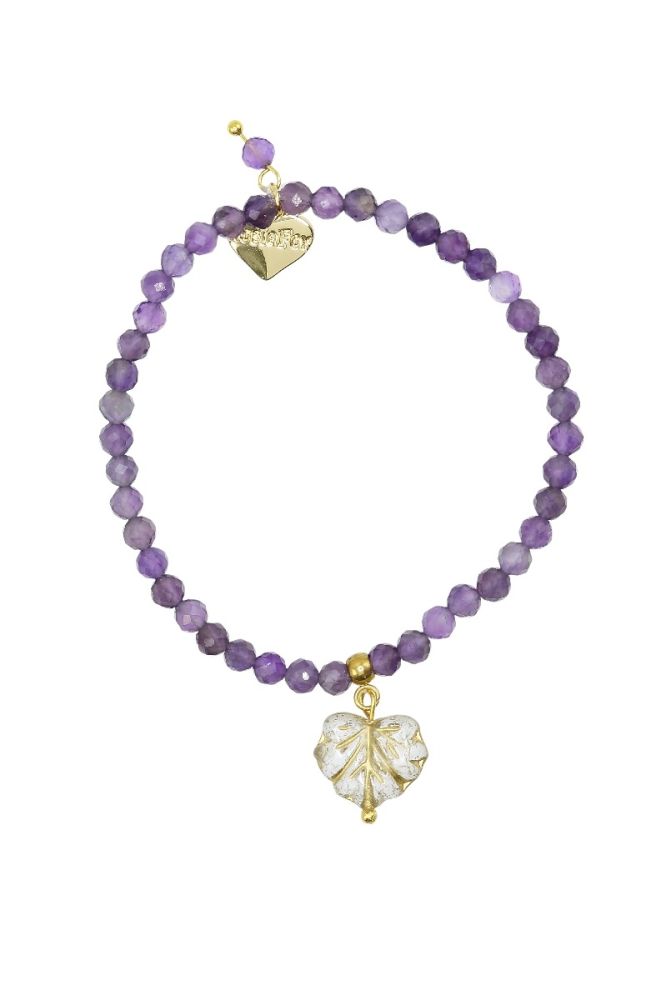 Designed and handmade in Herefordshire this stunning 14ct Gold plated, semi-precious, stretch bracelet is made from beautiful Amethyst gemstone crystals. The gemstone beads are approx 4mm each and faceted to give extra sparkle when the light hits them.
