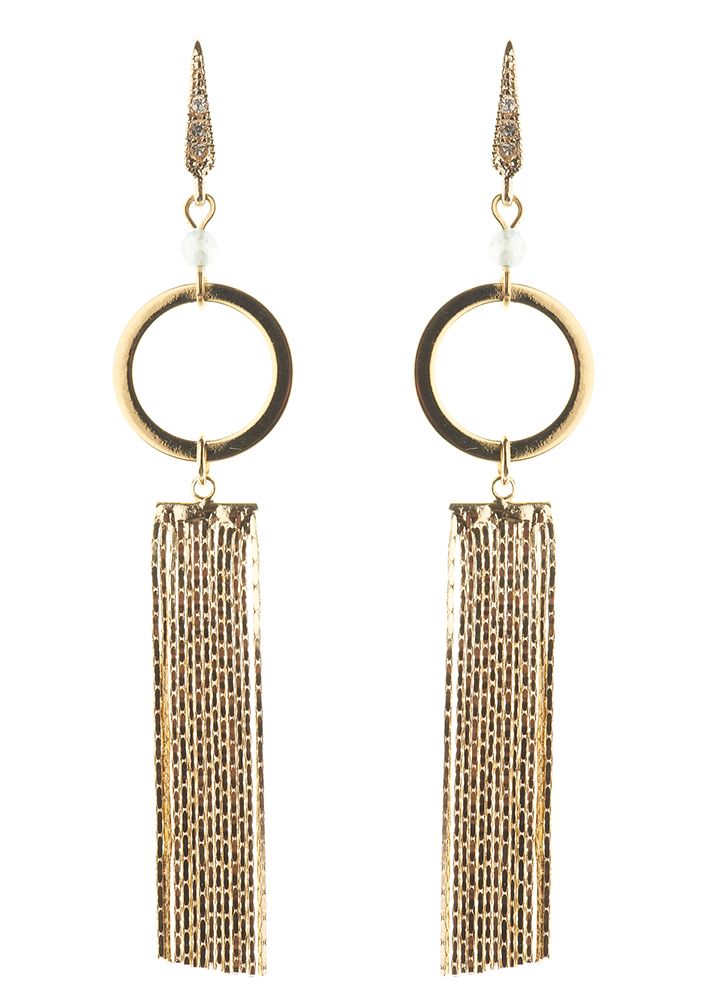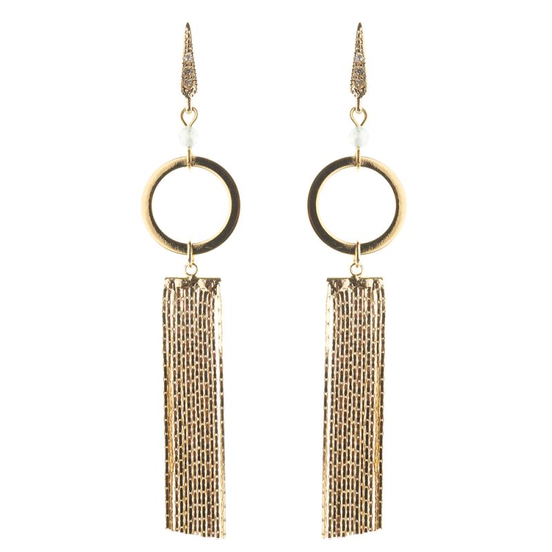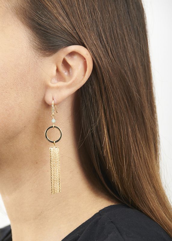 These dazzling, handmade 14 carat gold plated Aqua Agate Empowerment Circle Tassel earrings that will complete an evening look, or add some glitz to a casual outfit.