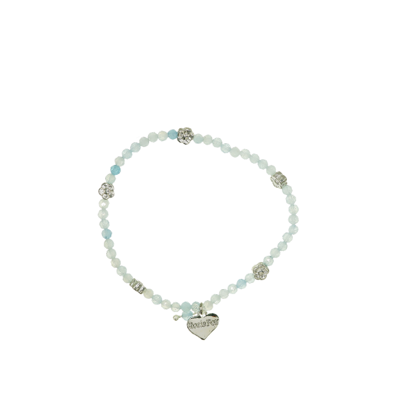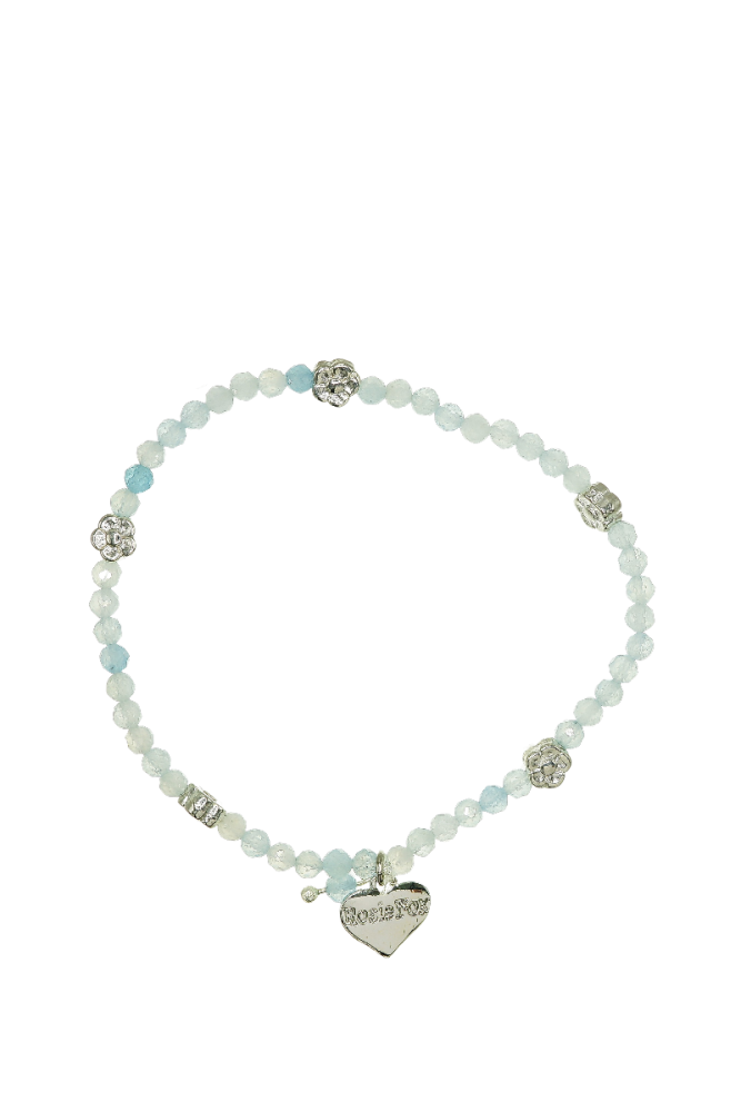 This beautiful handmade bracelet has beautiful little Silver plated 'Daisy' flower beads styled in with the Aquamarine gemstone beads and my signature Silver plated Rosie Fox heart charm.