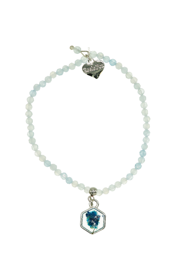 Designed and handmade in Herefordshire this stunning Silver plated, semi-precious bracelet is made from natural Aqumarine gemstones. The gemstones are approx 4mm each and faceted to give extra sparkle when the light hits them.
