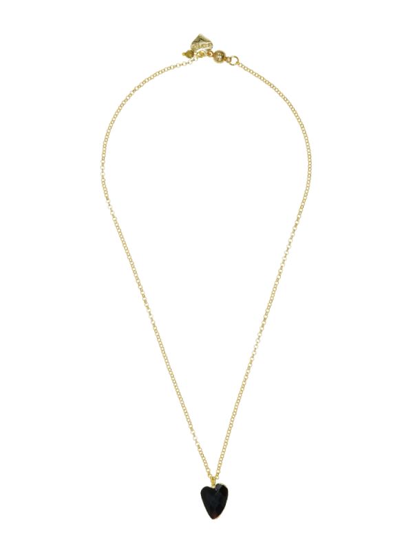 Designed and handmade in Herefordshire this beautiful 14ct Gold plated necklace lies perfectly adoring your neckline. There is a beautiful Pyrite gemstone and the stunning Black Spinel Gemstone Heart.