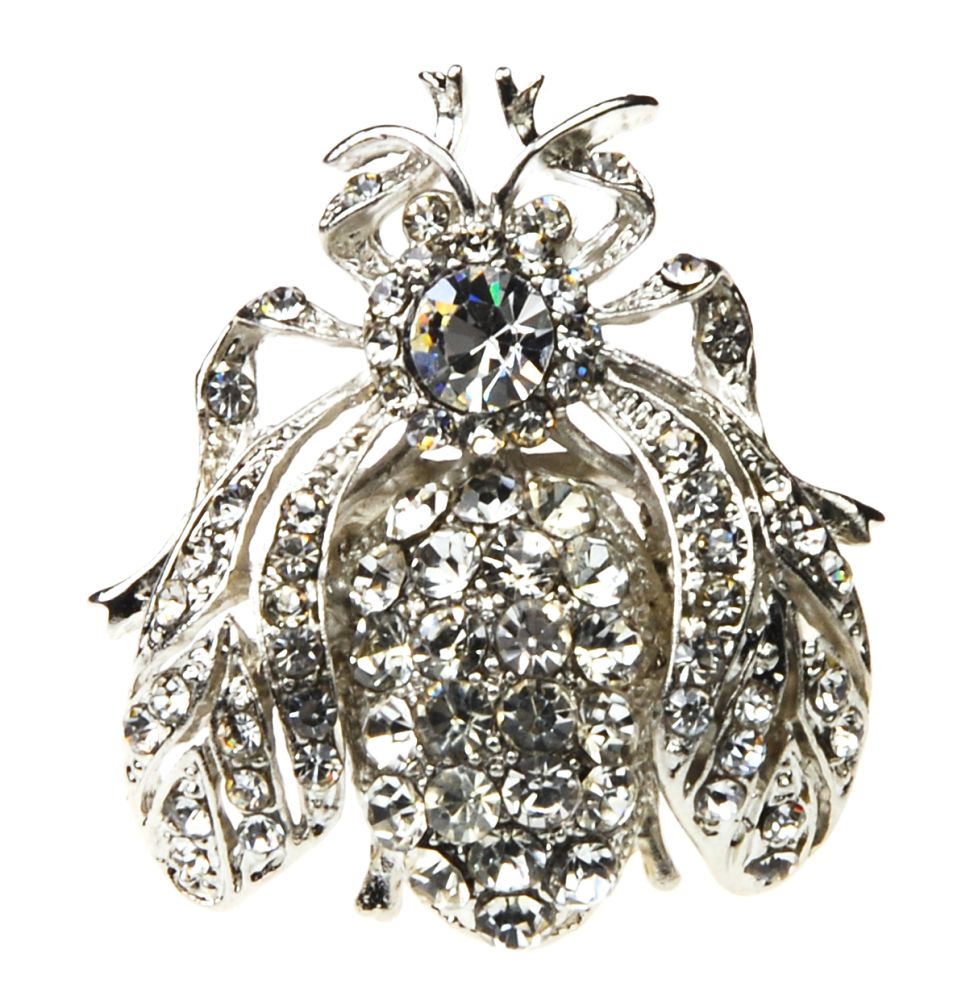 A stunning sparkling white crystal embellished beetle bug ring. This ring is fabulous as it is set onto an adjustable stretch back in an antique silver look. Approx 3.5 x 3cm.