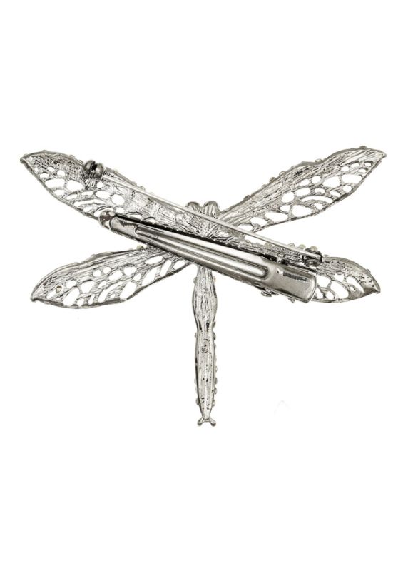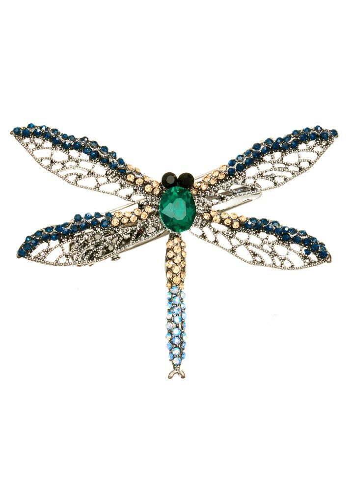 A stunning pewter with electric blue, green and honey crystal dragonfly. With a brooch pin and a hairclip on the back, this wonderful multi-functional piece can be worn as both a hair accessory or brooch. Measures approx 7cm x 5.5cm