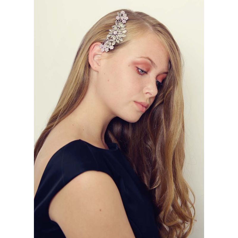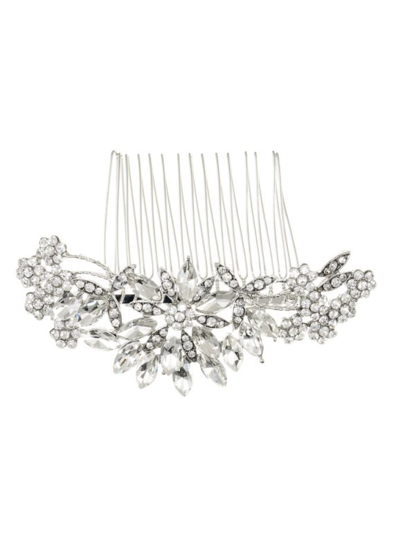 An elegant silver floral design hair comb adorned with sparkling clear crystals. Perfect to either wear on the side or at the back with a hair-up style. Measures approx 10cm x 7cm