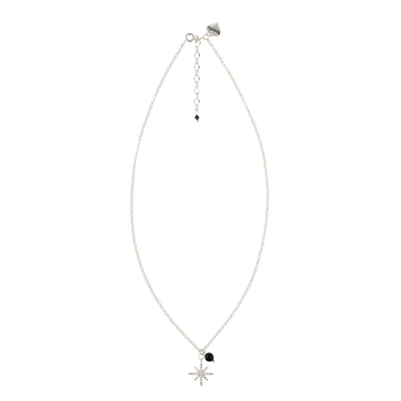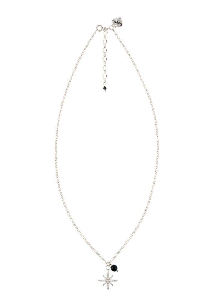 A simple and stunning silver plated necklace embellished with a gorgeous crystal star and single black agate bead. The star measures approx 1.8cm. The necklace clasp and chain is adjustable.