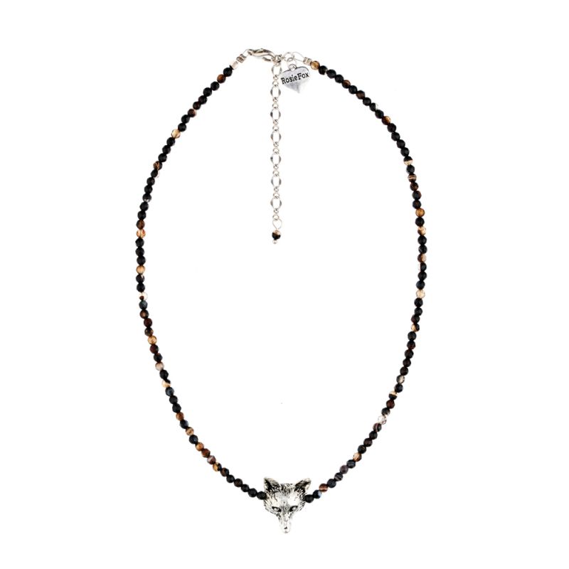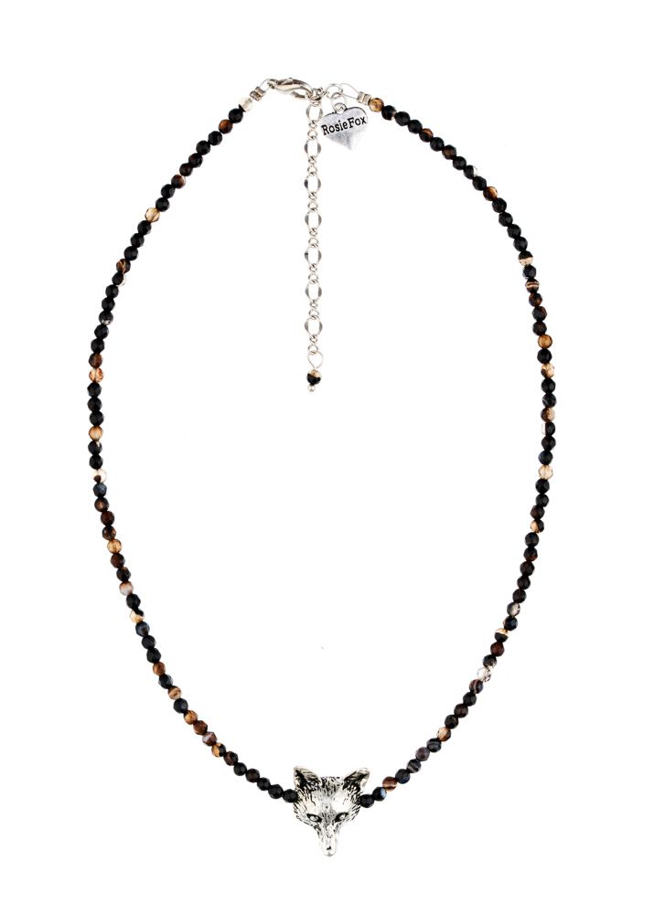 A stunning, silver plated, fox head necklace sitting amongst beautiful agate beads. This simple on-trend necklace is sure to bring a smile to your day! The fox head measures approx 1.8cm and the chain clasp can be worn at adjustable lenghts.
