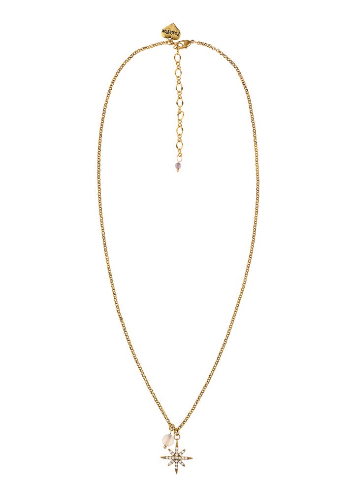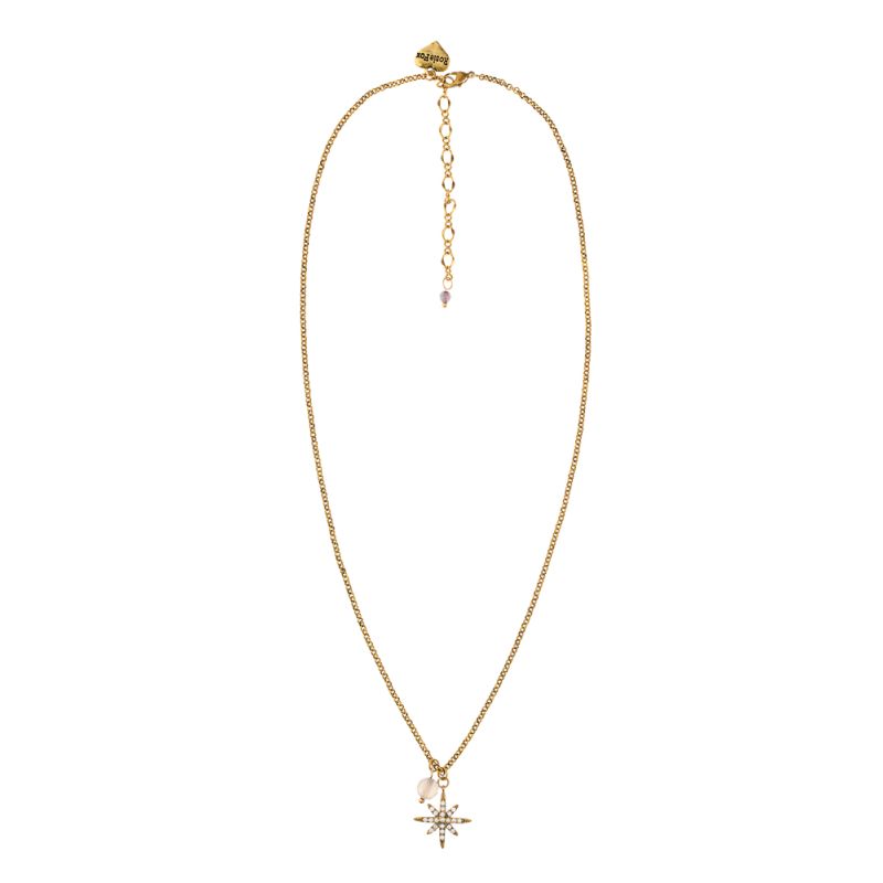 A simple and stunning gold plated necklace embellished with a gorgeous crystal star and a dove grey agate bead. The star measures approx 1.8cm. The necklace clasp and chain is adjustable.