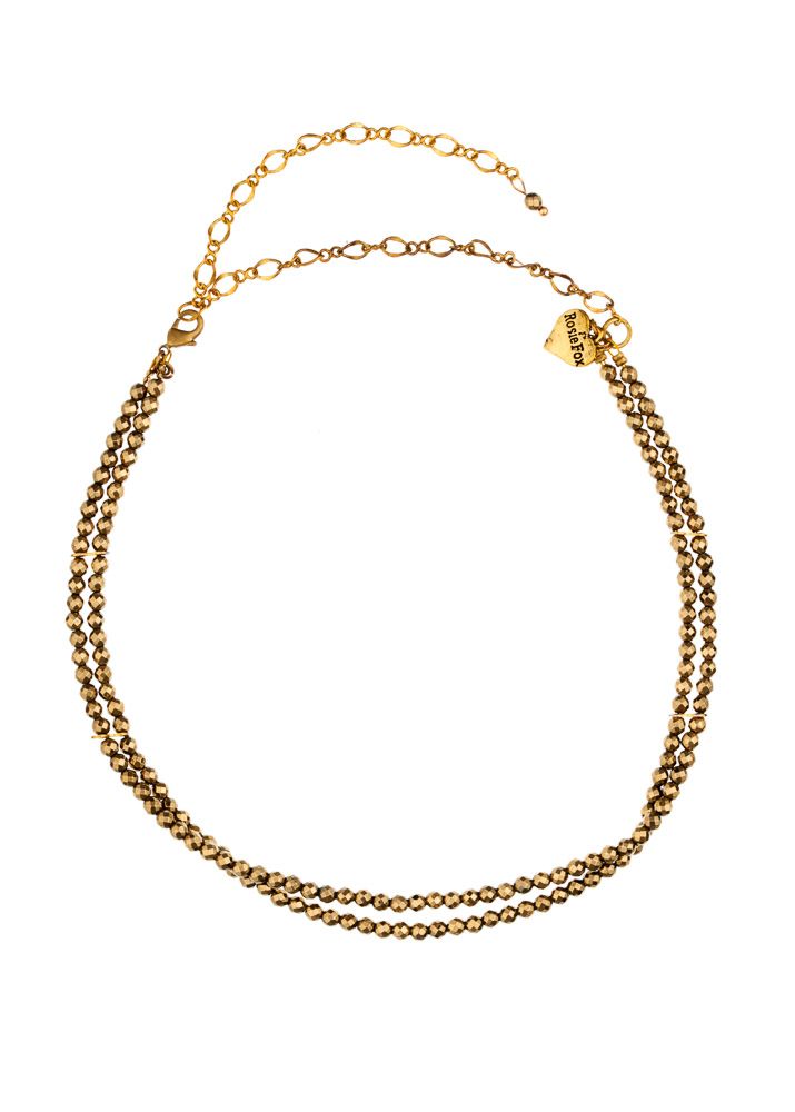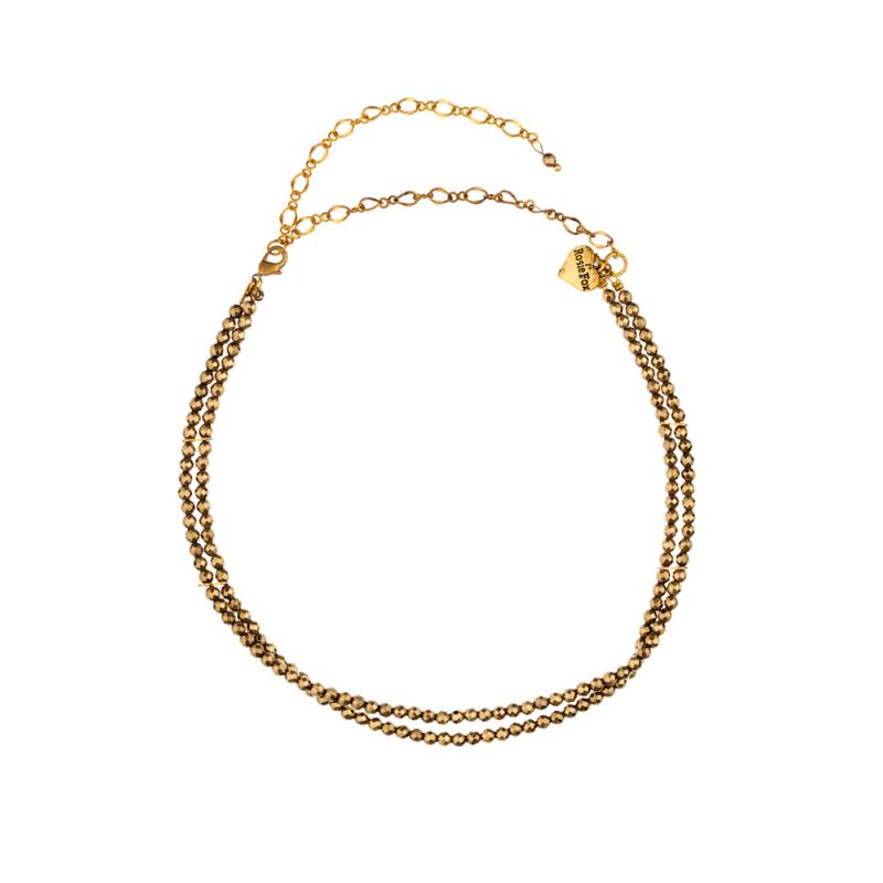 A stylish, handmade choker style necklace. This wonderful choker is made using semi-precious pyrite beads and is gold plated with an adjustable chain. The necklace width is 7cm.