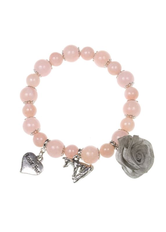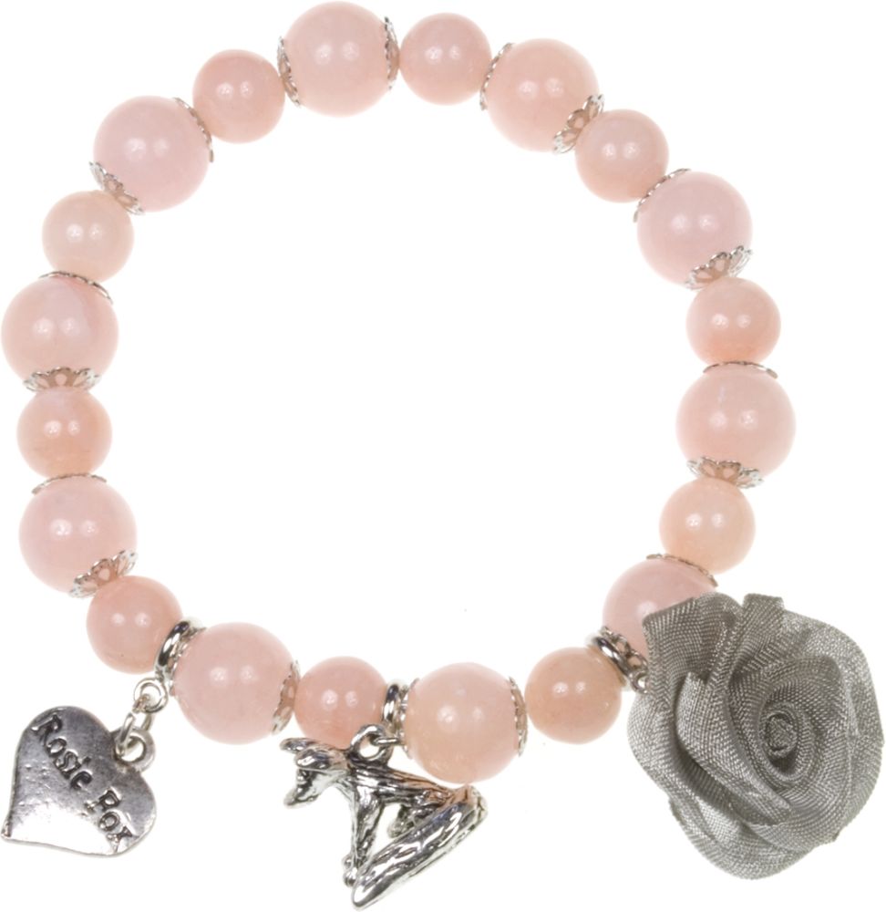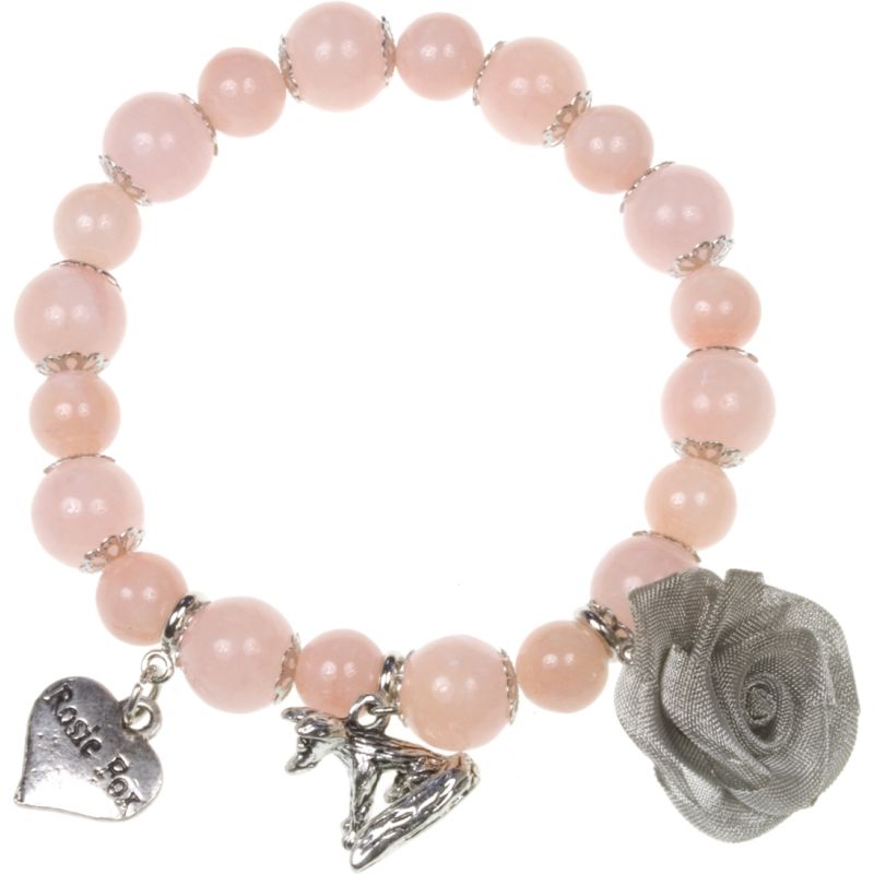 A simple and elegant single-strand smooth peach natural semi-precious agate stone beaded bracelet adorned with silver Rosie Fox signature heart, rose and fox charms. 1cm beads.