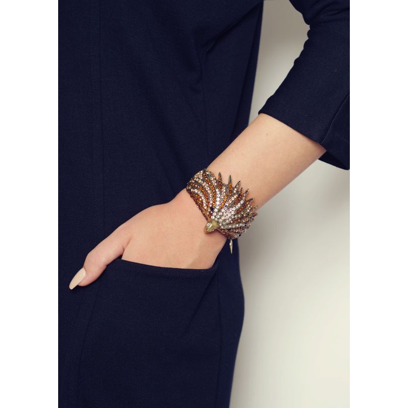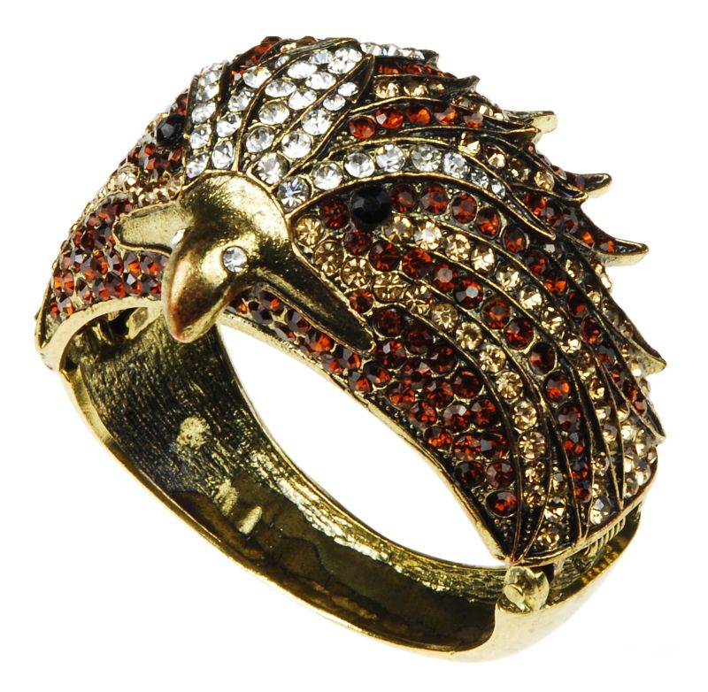 Make a statement in this must have crystal encrusted eagle cuff. Boasting a bronze/gold colour, this is an accessory that will make an outfit sparkle. Also available in rainbow colour. Approx 6cm wide.