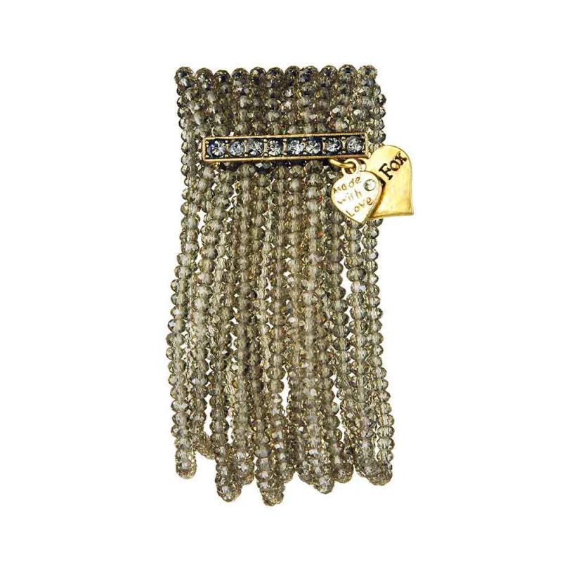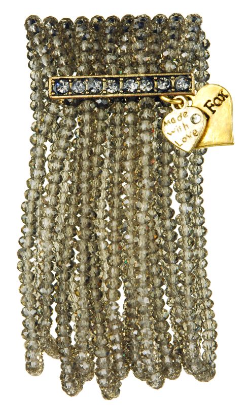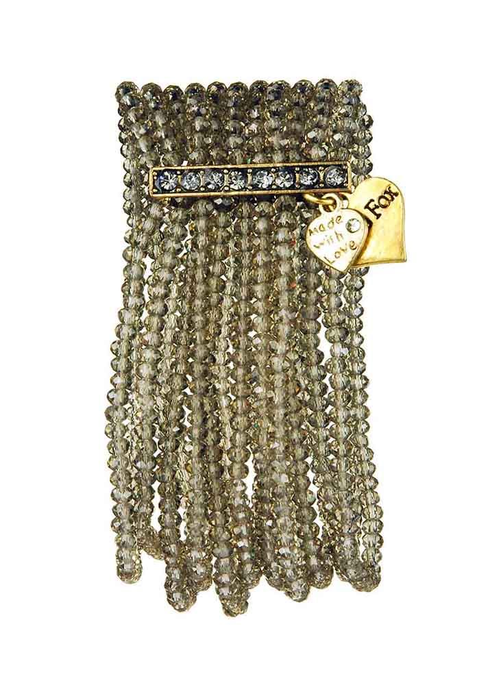 The fabulous Misty colour Crystal Multi Bracelet from Rosie Fox is perfect to add some vintage glamour to your look. Featuring 10 strands of grey glass beads. Measures approximately 12cm wide.