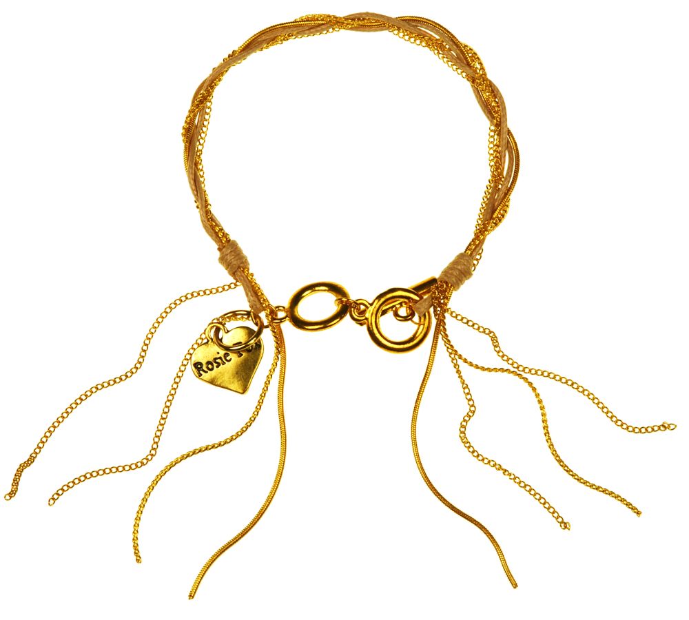 Simple and elegant, this fashionable gold-coloured rope entwined with gold chains friendship bracelet with signature Rosie Fox heart charm adds a splash of colour and a touch of laid-back style to any outfit.