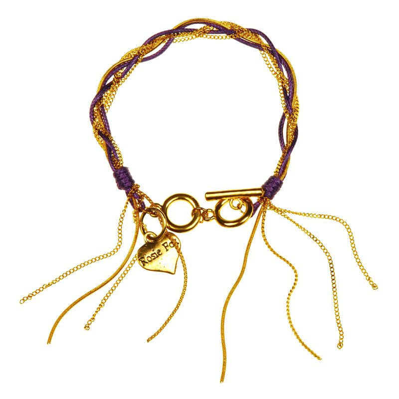 Simple and elegant, this fashionable amethyst-coloured rope entwined with gold chains friendship bracelet with signature Rosie Fox heart charm adds a splash of colour and a touch of laid-back style to any outfit.