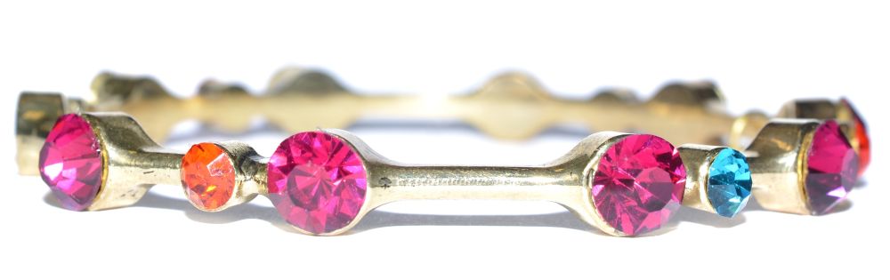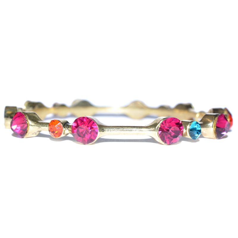 A radiant pink rainbow tone thin bangle with crystal details. Approx 1cm height & 6.5cm diameter.