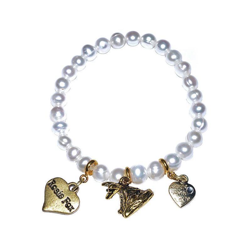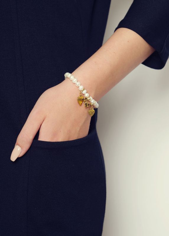 A beautiful freshwater pearl bracelet with gold charm detail.