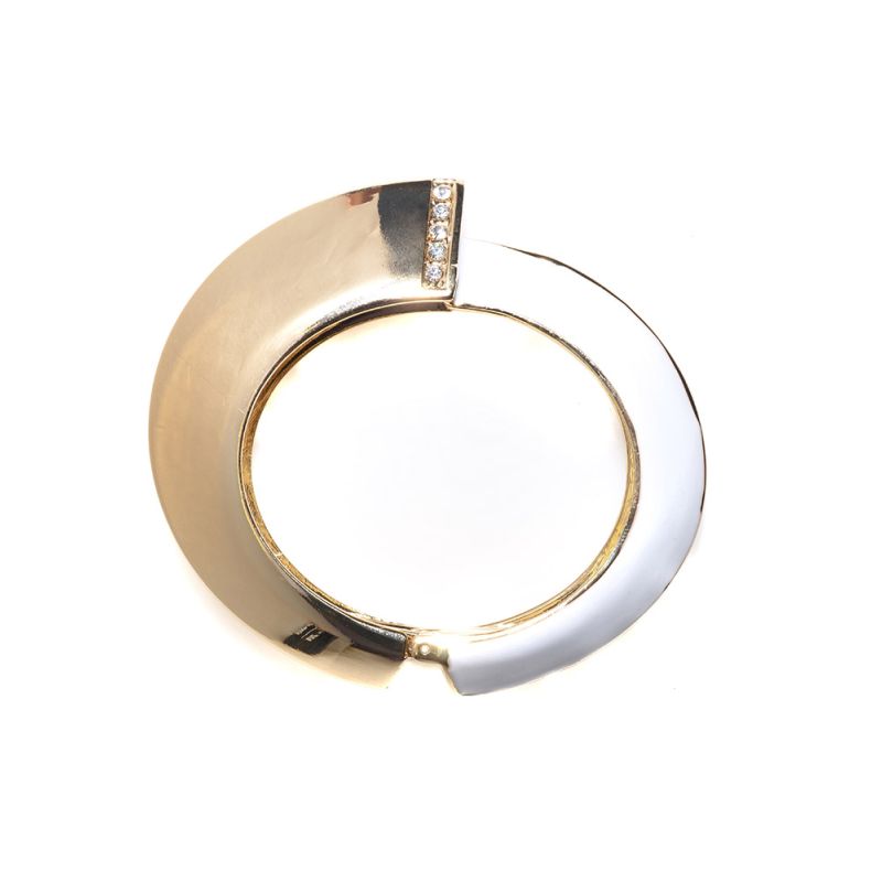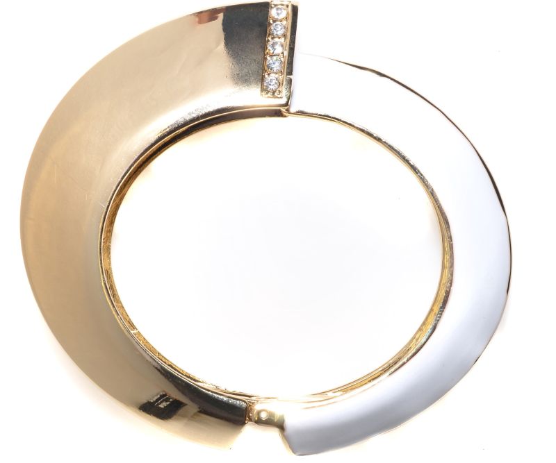 This beautiful and striking white enamel and gold cuff with crystal embellished clasp with add a wonderful touch to any outfit! measures approx. 1.5cm