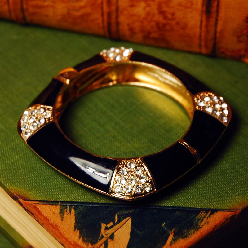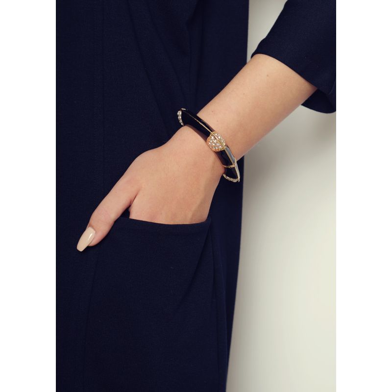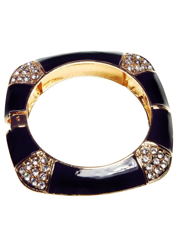 A fabulous art deco-style cuff, with an elegant black design and crystal encrusted corners. Measures approx 1.5cm wide.