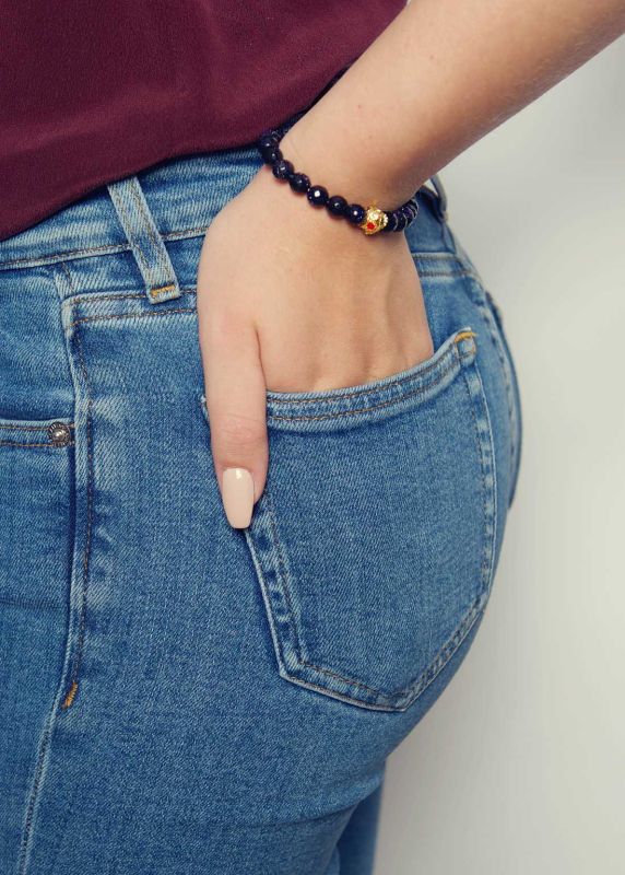 Look a little closer at this elegant beaded bracelet. Each bead is crafted from stunning navy starstone gemstones, which naturally glisten beneath the surface to reveal a stunning galaxy effect.