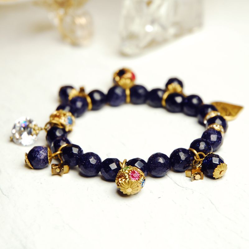 Each bead on this exquisite charm bracelet is crafted from stunning navy starstone gemstones - look a little closer and you'll see an incredible shimmer beneath the bead's surface, revealing a stunning galaxy effect.