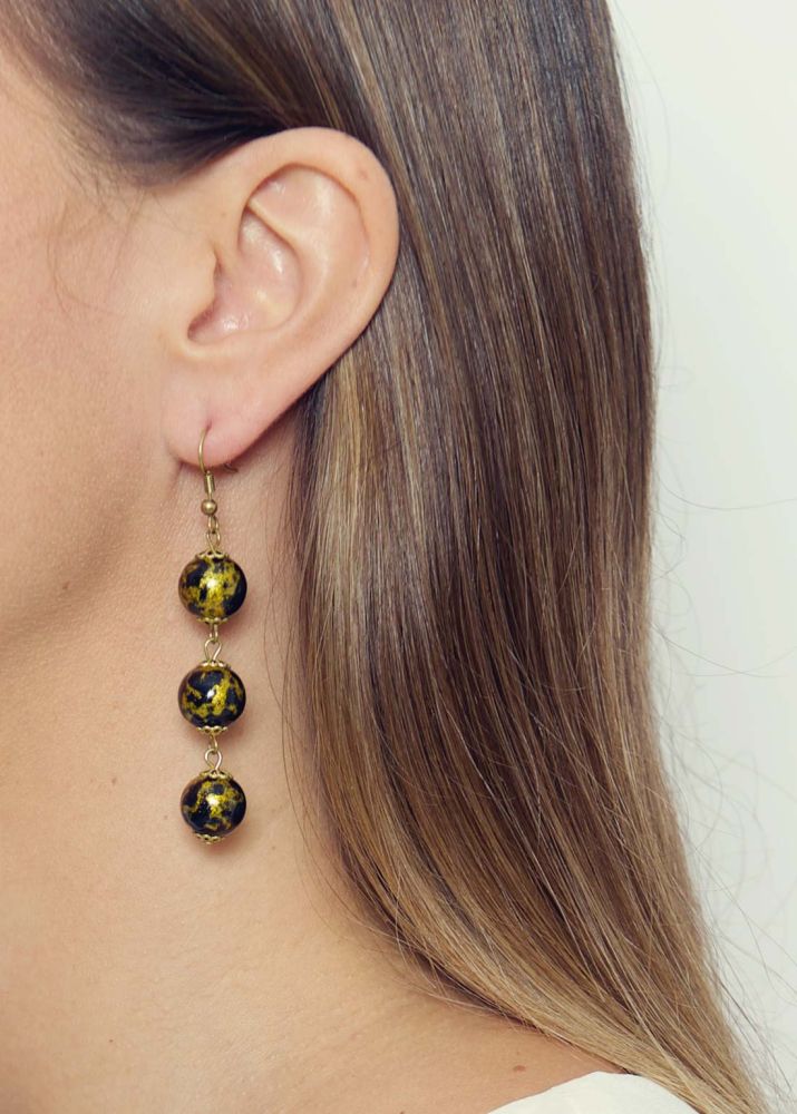 Stylish and elegant Midnight black bead earrings with gold detail. Notes: 5.5cm