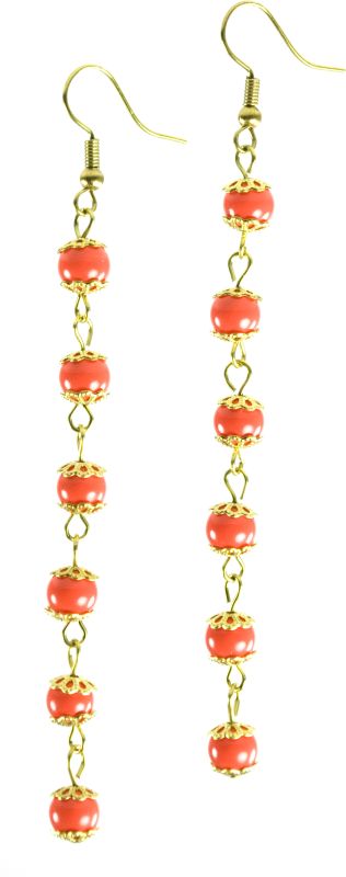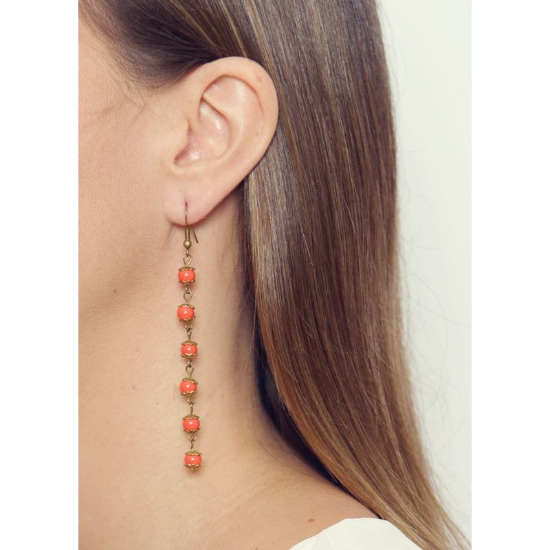 Beautiful tangerine-coloured glass bead drop earrings, for that added pop of colour. Notes: 8cm long