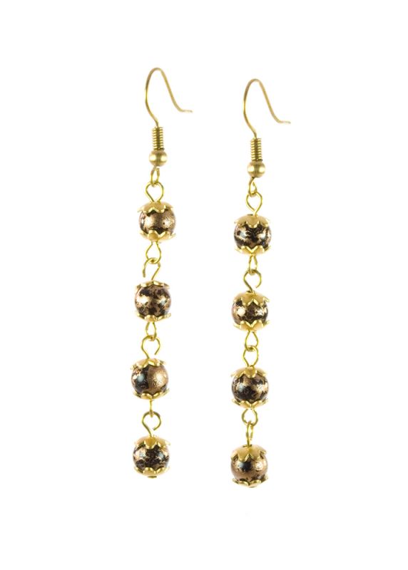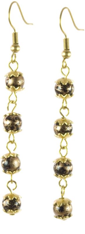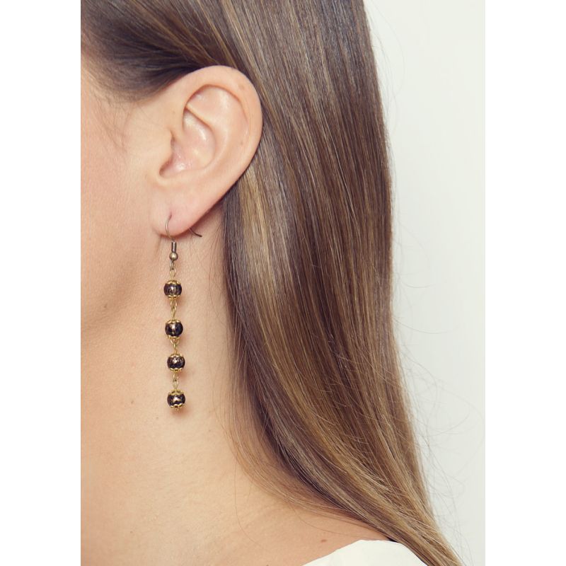 Beautiful four-tier bead earrings with vintage-inspired gold detail. Matching necklaces available. 5.5cm drop