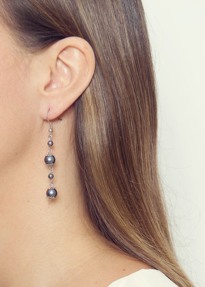 Beautiful four-tier bead earrings with vintage inspired gold detail. Matching necklaces available. Measurements: 5.5cm drop