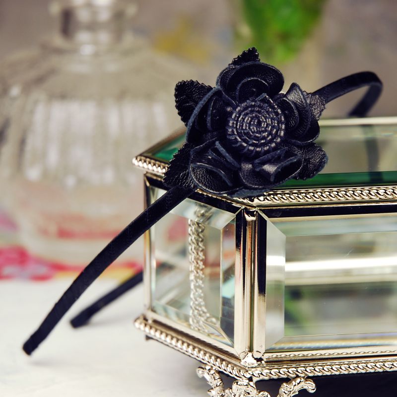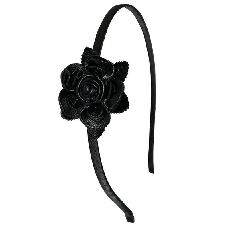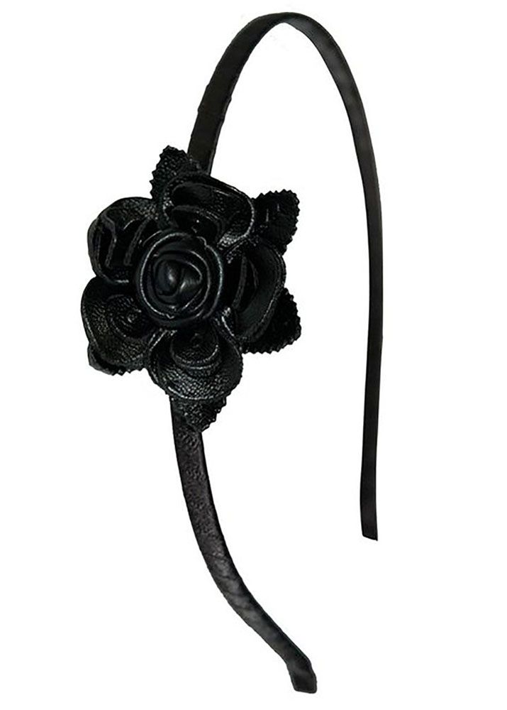 Accessorise your hair with this pretty black leather-effect headband featuring a beautiful flower.