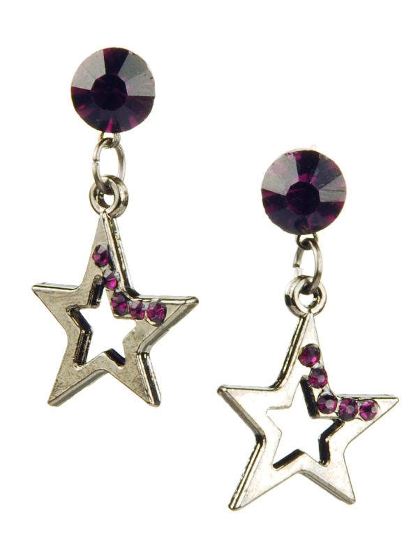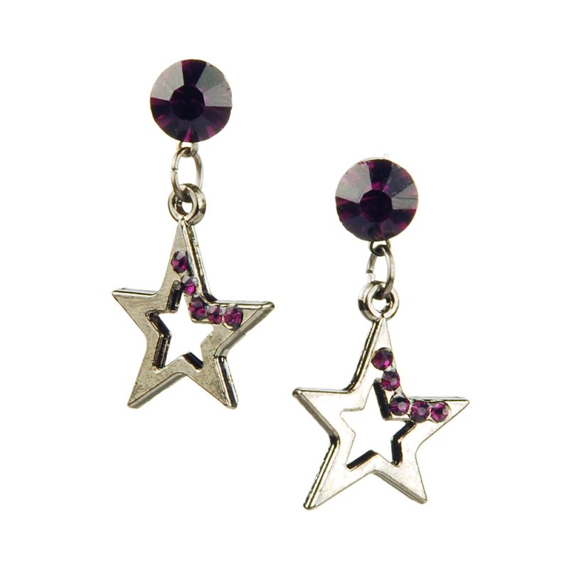 Elegant pewter star earrings with plum crystal studs. Approximately 3cm drop.
