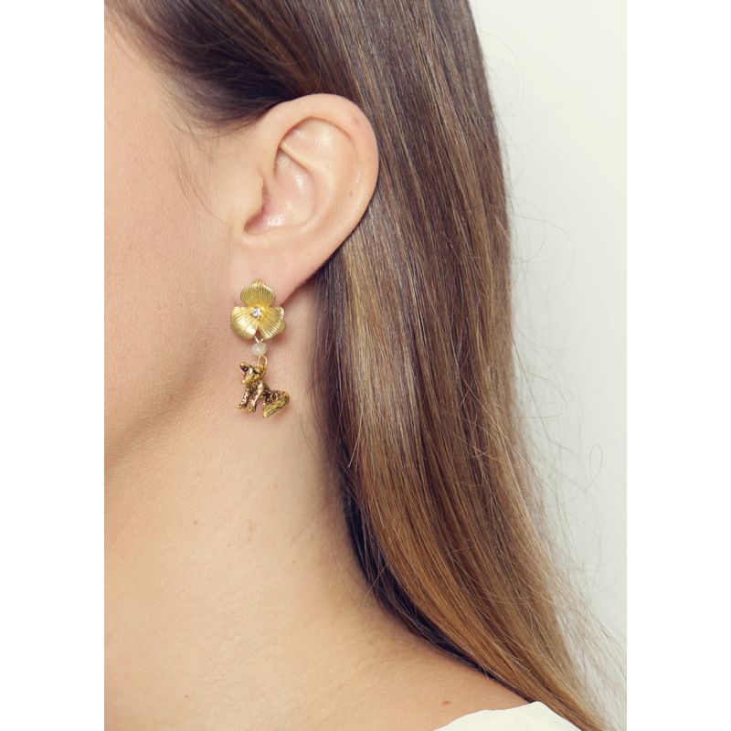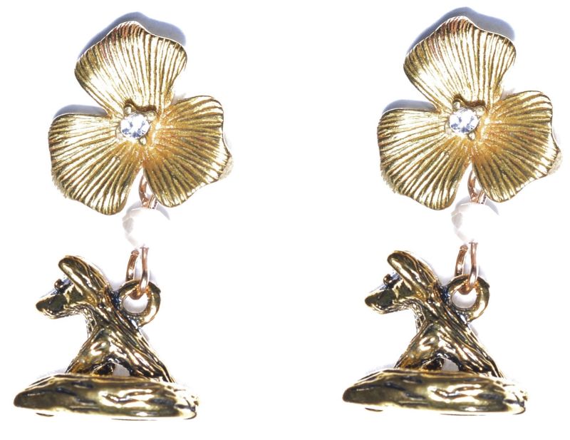 A pair of beautiful Ivory crystal, fox and flower earrings. Approx 2 cm drop.