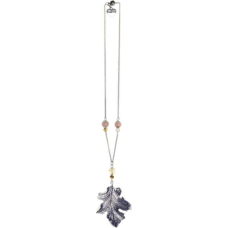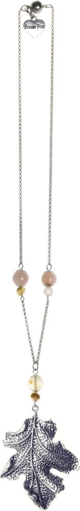 Beautiful necklace with natural stone agate beads and a vintage-inspired statement-making silver leaf pendant. 30cm Drop