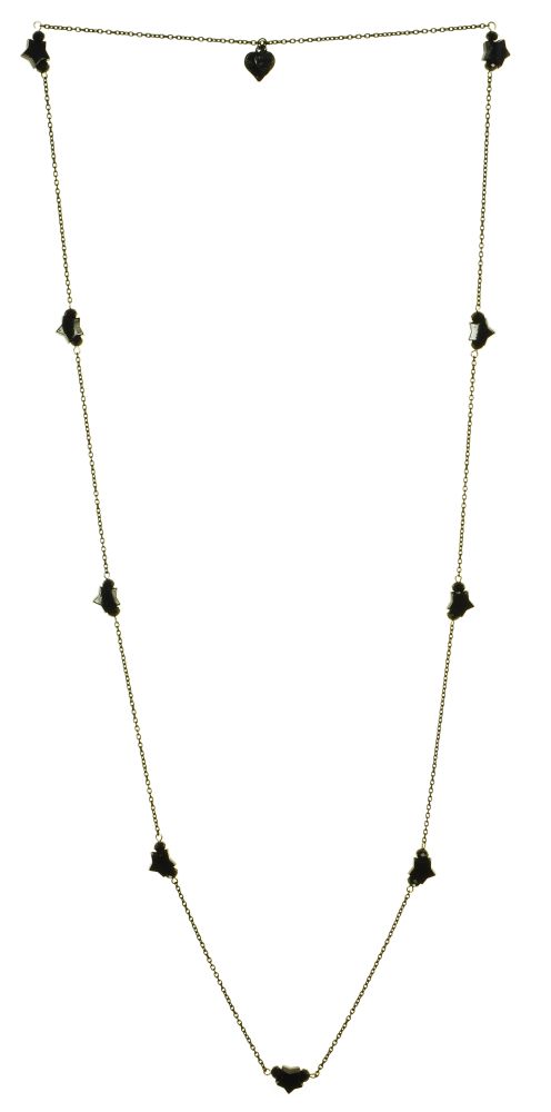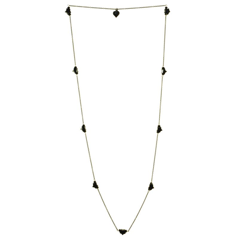 A beautiful and striking long necklace with a silver chain and black hearts. Approx 50 cm drop