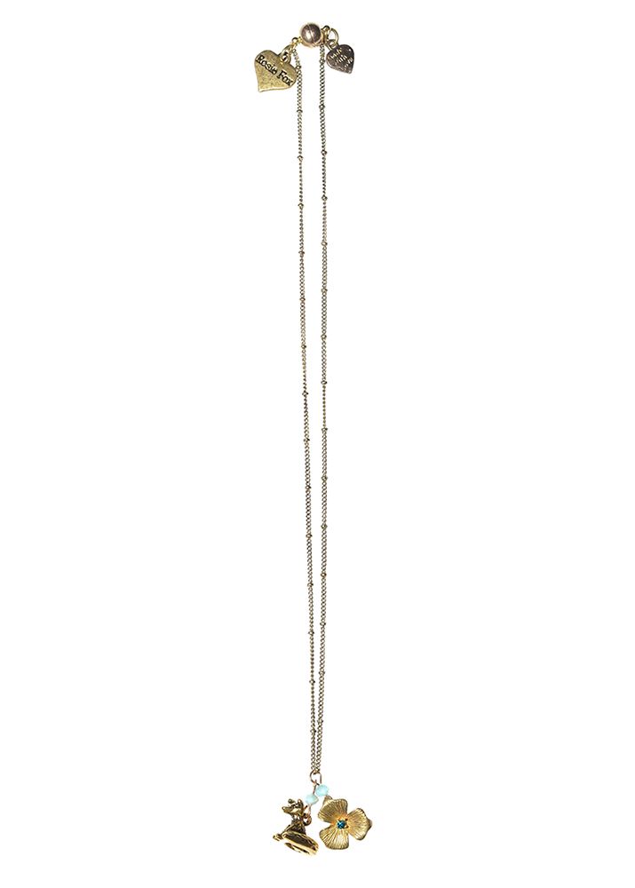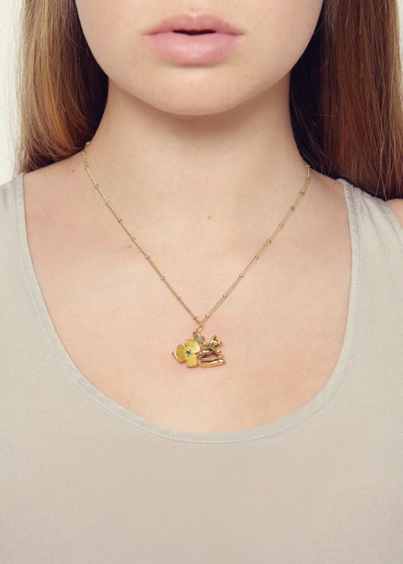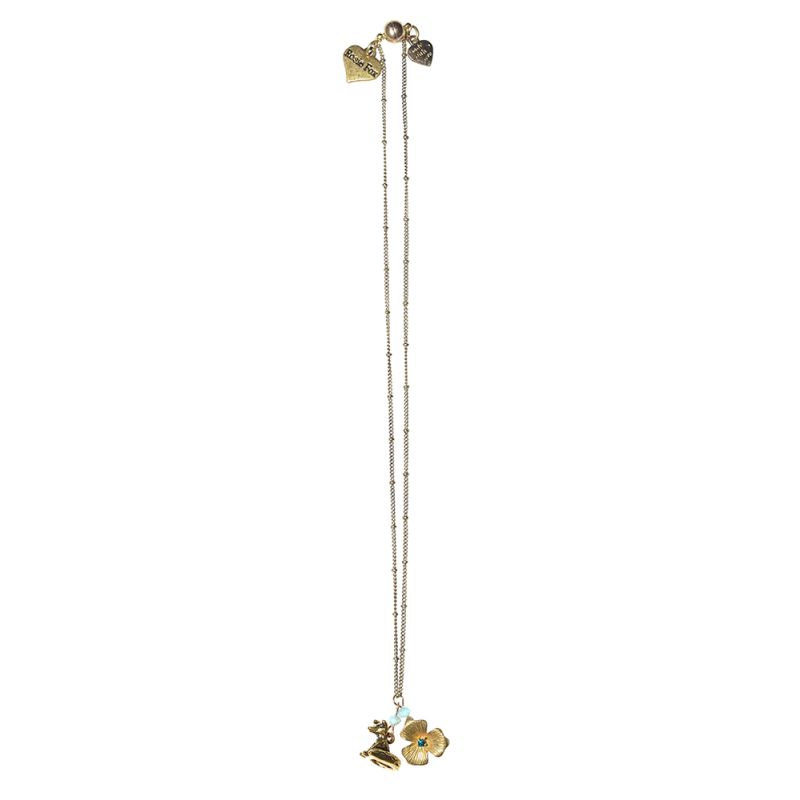 A classy turquoise tone thin and elegant necklace with fox and flower details. Approx. 18 cm drop.