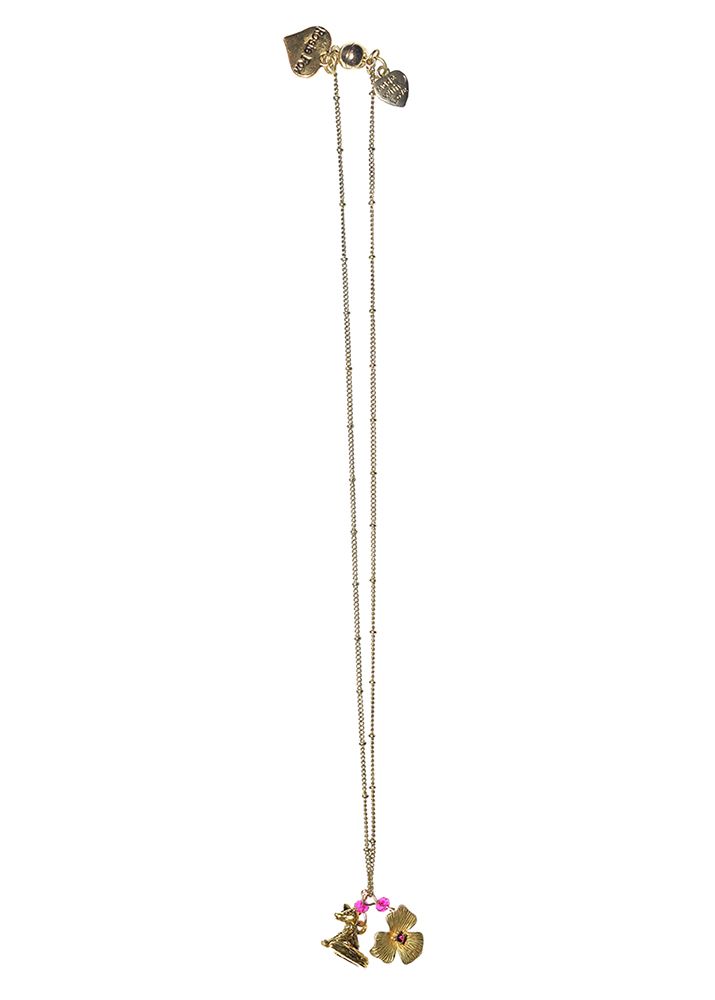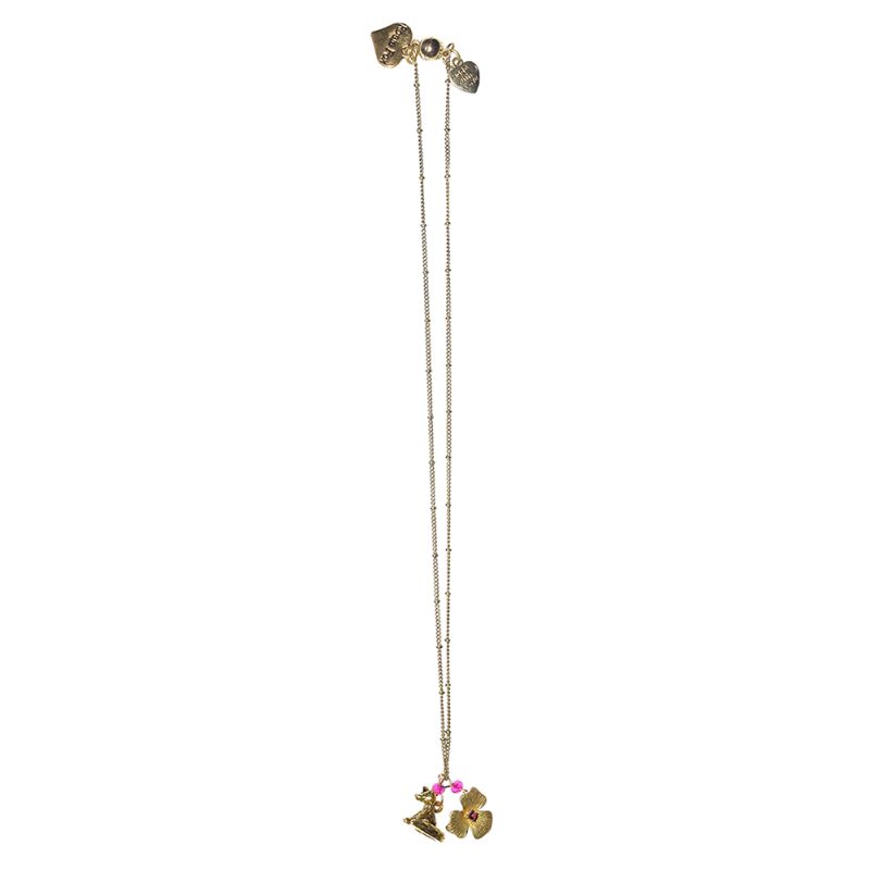 A classy fuchsia tone thin and elegant necklace with fox and flower details. Approx. 18 cm drop.