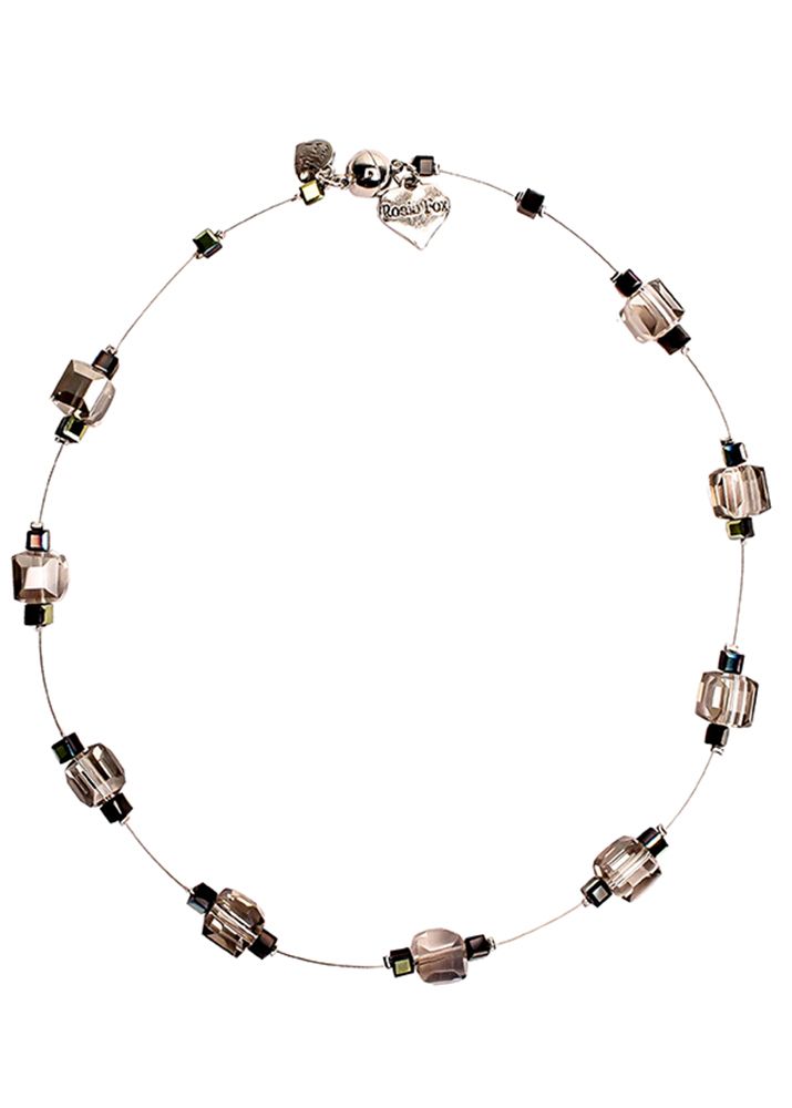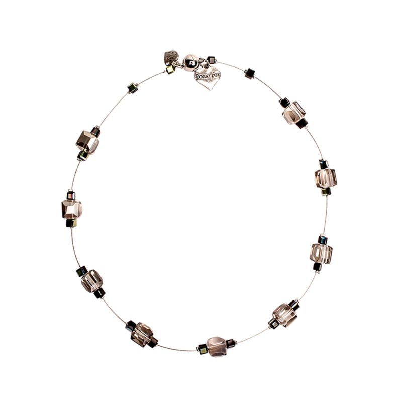 A beautiful vintage style smoky grey and irridescent cube necklace. This is a beautiful necklace that catches the light and an elegant colour that works with most outfits. This is a great day to night accessory and also has an easy to fasten magnet close at the back.Measures approx 15cm drop.
