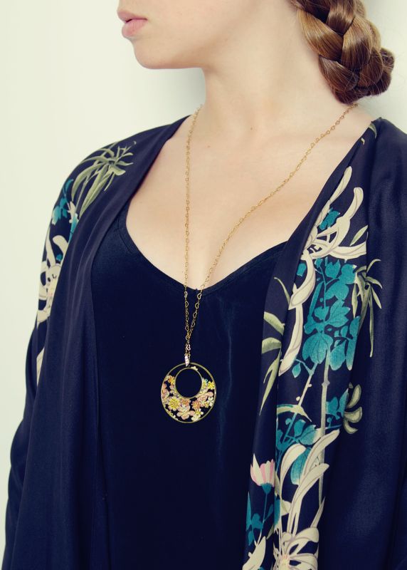 A long, floral design hoop necklace, perfect for accessorising a summer's evening. Approx 38.5cm drop.
