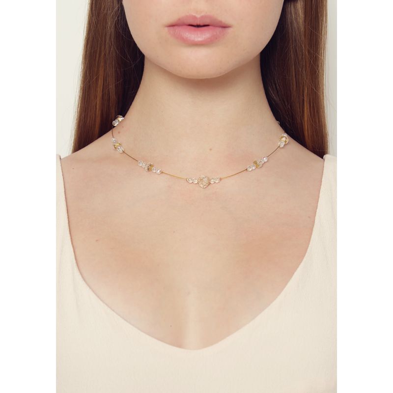 A crystal bead with warm gold hues in the centre creates a subtle focus point, and the necklace is secured with a magnetic clasp.