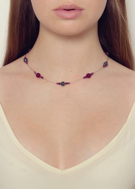 This stunning beautiful beaded necklace was made to add glamour to your life. Handmade from berry agate and silver hematite beads this delicate necklace is the perfect accessory to any outfit.