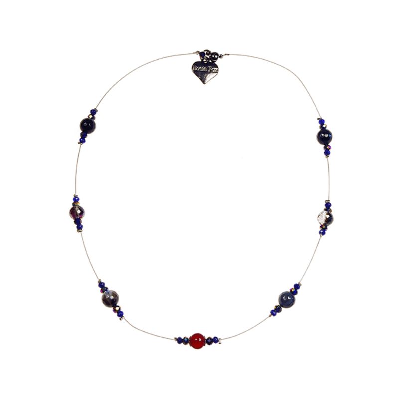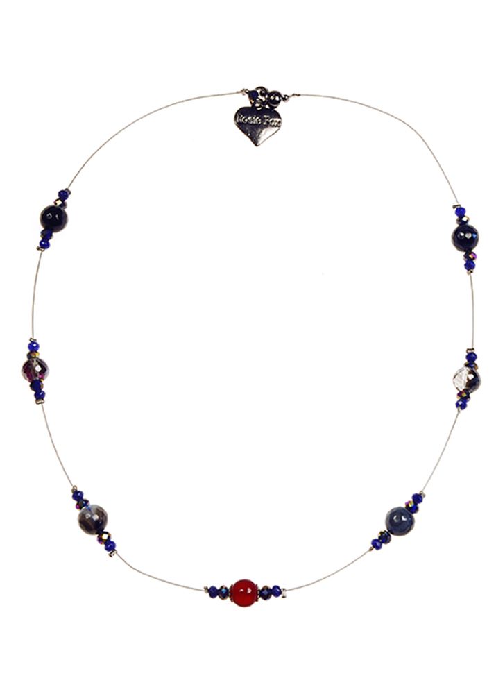 This stunning beautiful beaded necklace was made to add glamour to your life. Handmade from blue agate and cryolite beads this delicate necklace is the perfect accessory to any outfit.