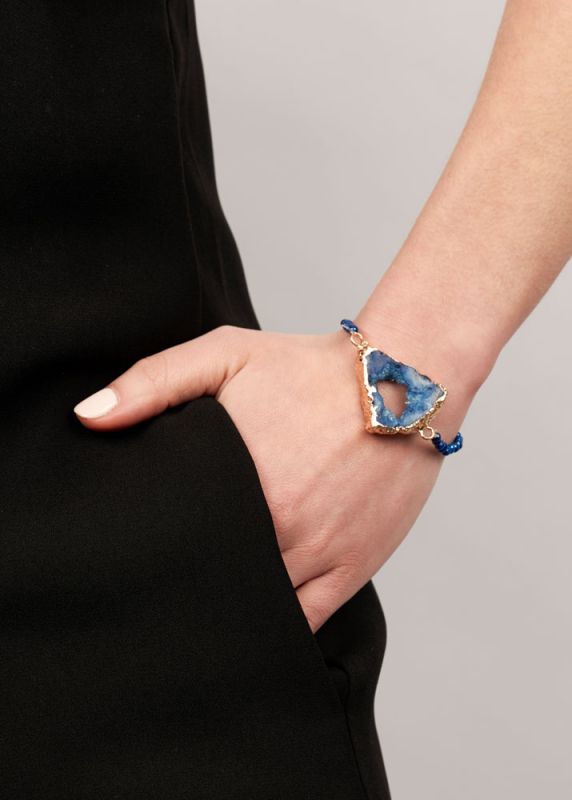 In a dreamy, deep sea blue hue, this seasonally-inspired statement piece will transport you to your own tropical beach paradise! Accessorise with cobalt blue agate necklaces and earrings for a seamless, cutting edge look. Natural agate rock measures 3.5cm in diameter. Bracelet is made with adjustable elastic to be worn with ease.