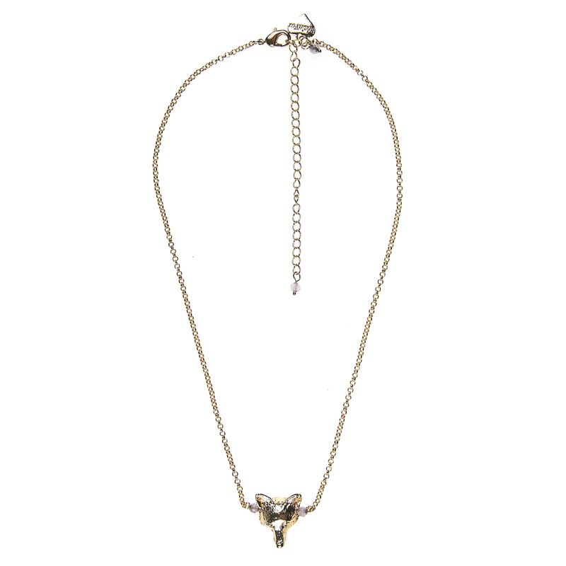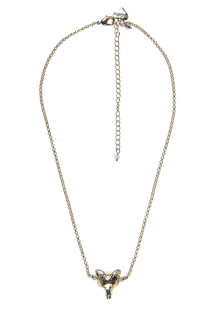 A beautiful semi-precious, hand made gold necklace with a gold plated fox head detail. This necklace is made with stunning natural Agate gemstones.