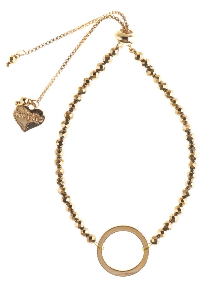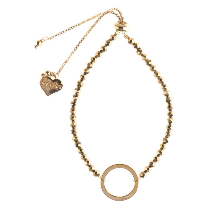 A gorgeous and chic handmade gold plated Pyrite Gemstone Empowerment Circle Bracelet. The Empowerment Circle represents the notions of wholeness, the Self and unity. Believing that we are all supporting each other and that no one should ever feel alone.