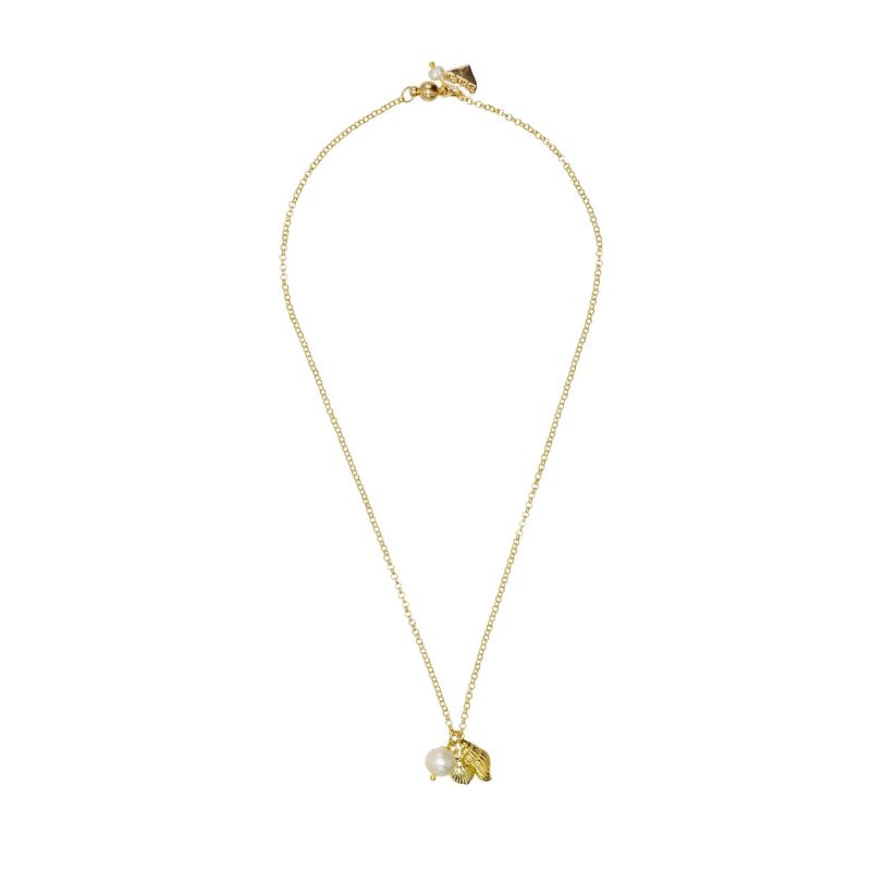 Designed and handmade in Herefordshire this beautiful 14ct Gold plated necklace lies perfectly adoring your neckline. There is a gorgeous large 1cm Freshwater Pearl with two 18ct plated Gold shells. It is finished using a strong gold magnet clasp with my signature 14ct Gold plated Rosie Fox heart charm.