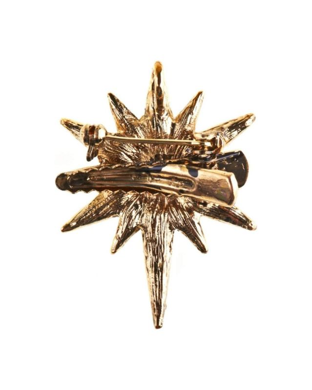 A shimmering Gold crystal star, hand crafted and set on a gold base can either be worn as a delicate hairpiece or as an eye catching brooch to bring a touch of elegance and sparkle to any outfit.